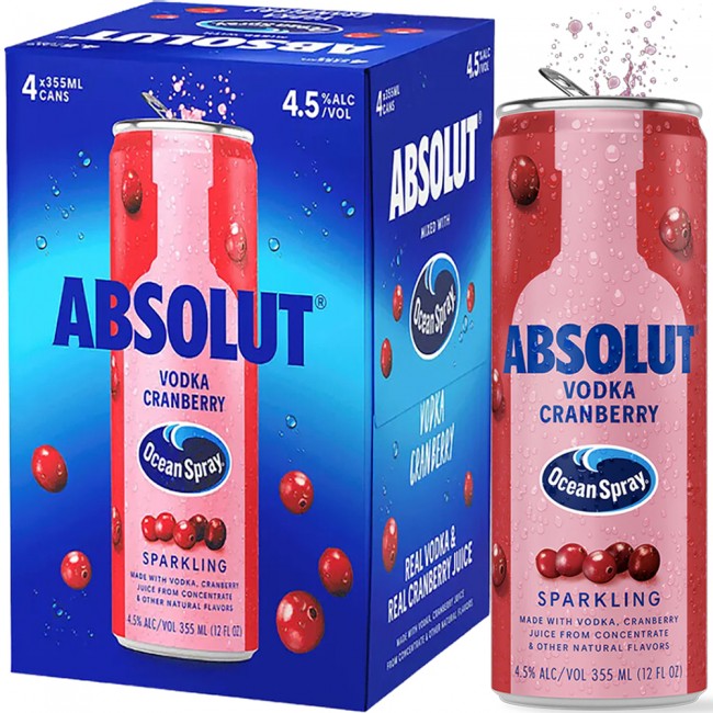 Cranberry Juice. Made with premium vodka from Absolut with real cranberry juice from Ocean Spray, crisp sparkling water and natural flavor. Enjoy the New Era of Vodka Cran chilled from the can or poured over ice.