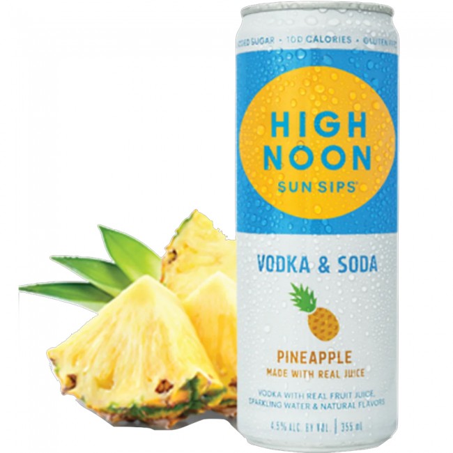 High Noon Pineapple Seltzer is made with real vodka and real fruit juice, sparkling water and natural flavors. Only 100 calories, no added sugar and gluten free.