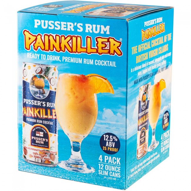 Traditionally, the Painkiller® includes 4 parts pineapple juice, 1 part orange juice, 1 part cream of coconut, and Pusser's Rum – and is then topped with freshly grated nutmeg and garnished with an orange slice and a cherry.